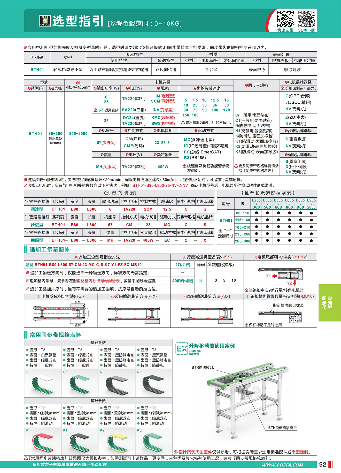 • BTH01:正反向传送,轻载挡边导正型,齿面贴布降噪,支持精密定位输送