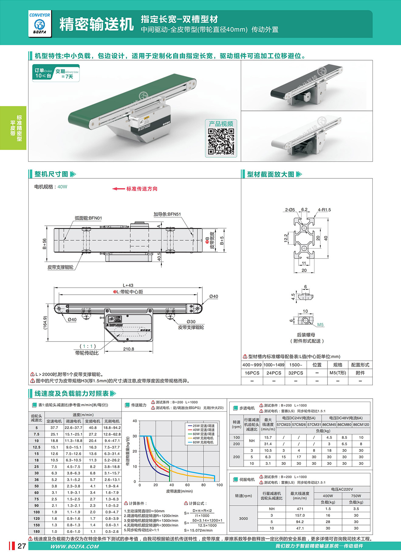 • BFZ01:单向传送,弧面辊防跑偏,皮带平面贴合度好,平面精度高