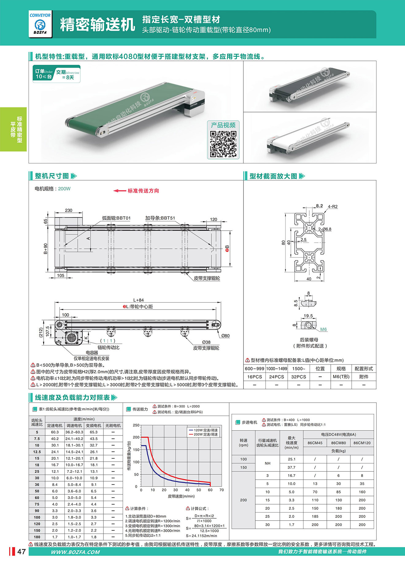 • 机型特性:重载型,通用欧标4080型材便于搭建型材支架,多应用于物流线。