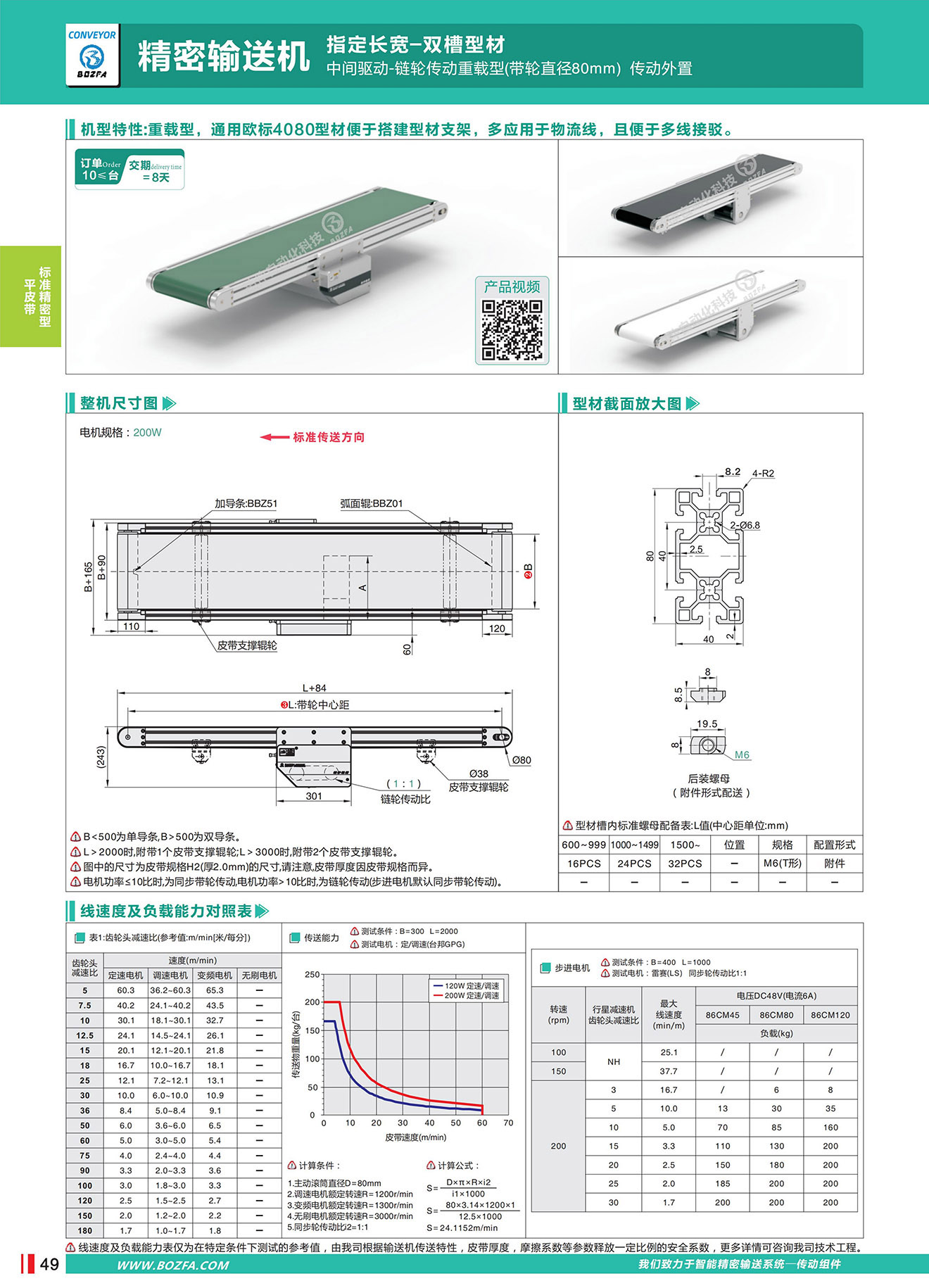 • BBZ01:单向传送,弧面辊防跑偏,皮带平面贴合度好,平面精度高