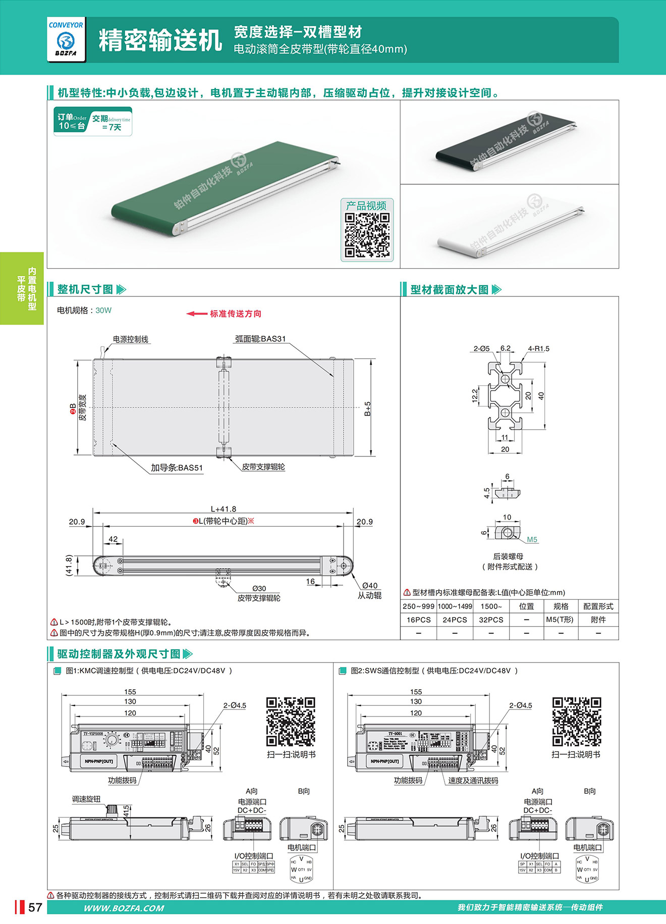 • 机型特性:中小负载,包边设计,电机置于主动辊内部,压缩驱动占位,提升对接设计空间。