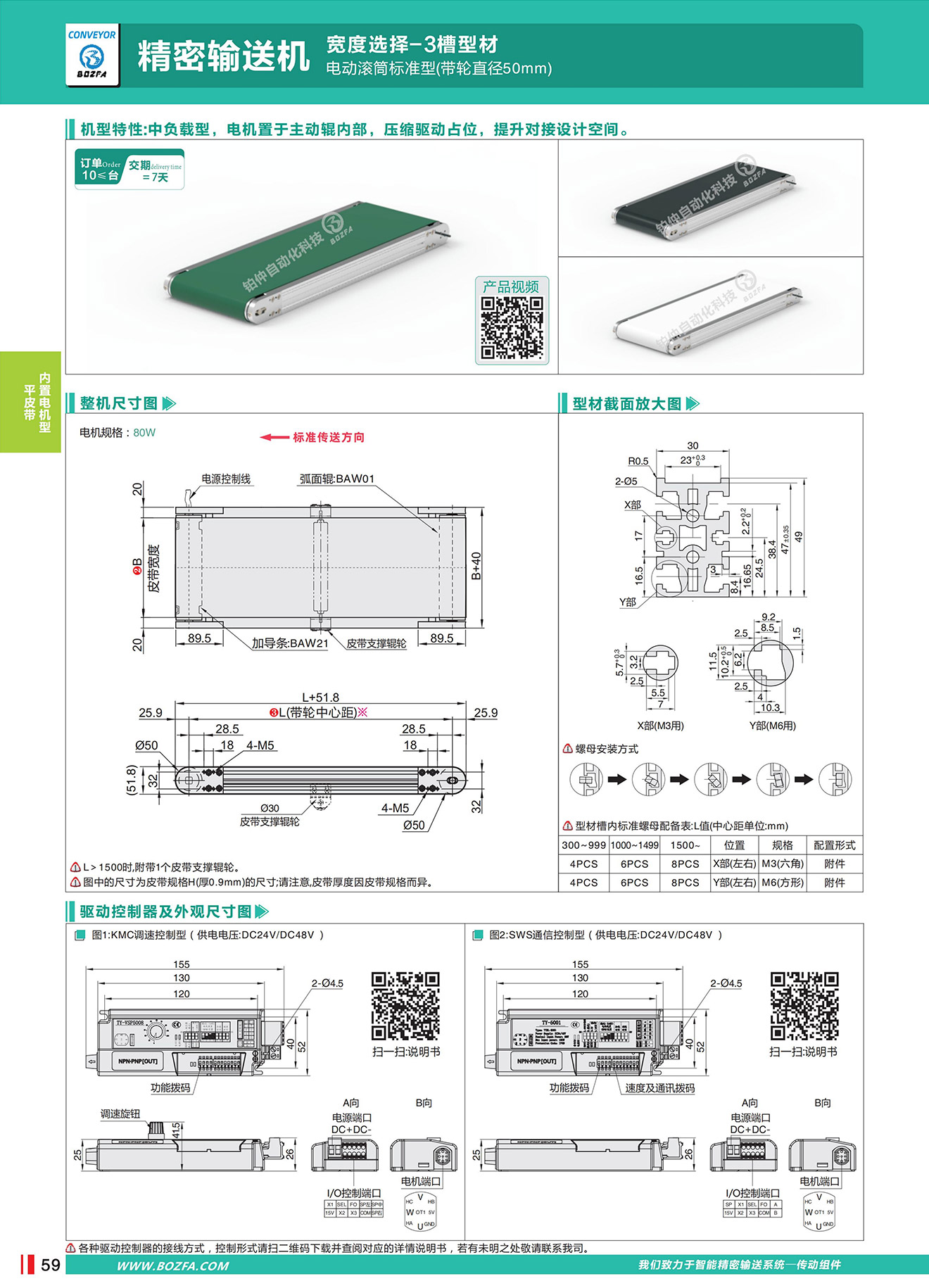 • 机型特性:中负载型,电机置于主动辊内部,周压缩驱动占位,提升对接设计空间。