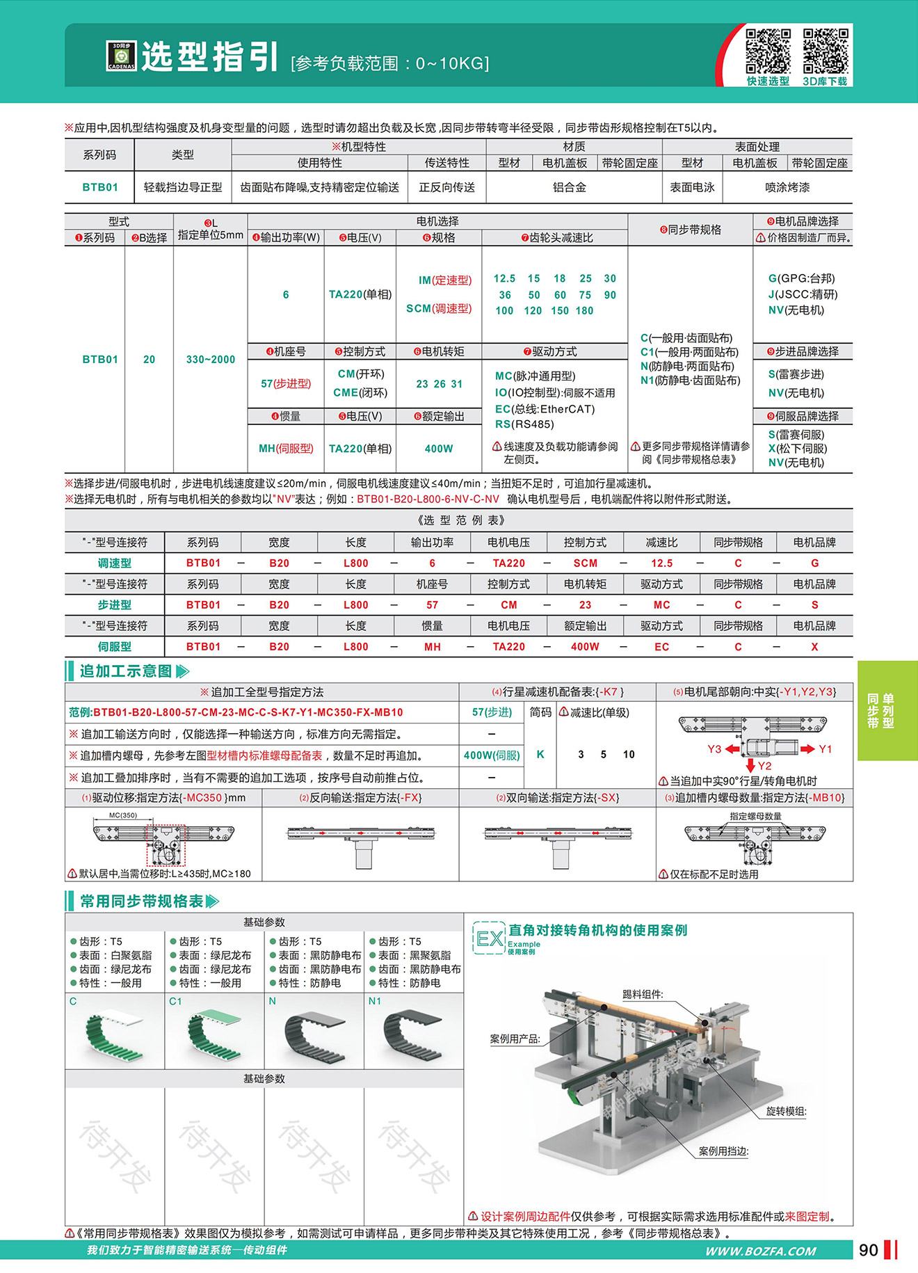 • BTB01:正反向传送,轻载挡边导正型,齿面贴布降噪,支持精密定位输送