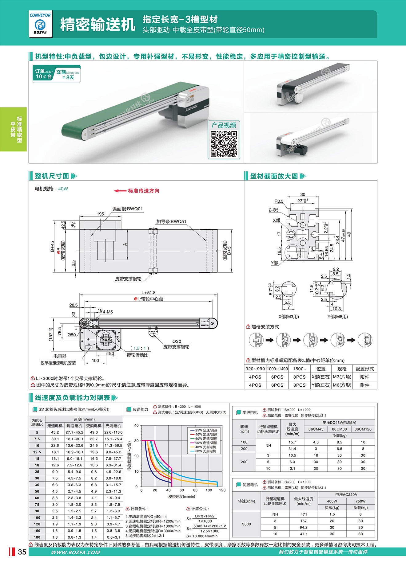 • 机型特性:中负载型,包边设计,专用补强型材,不易形变,性能稳定,多应用于精密控制型输送。